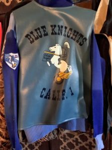 The CA1 vest is another interesting story. Mike tells it like this. Salinas Police Department tailor-made wool uniforms were dark pants with medium blue shirts. Mike wanted a vest to show everyone they were a riding club. The club used the same uniform business to make the CA1 first vests out of flag satin material. Mike explained all “road clubs” (back then) wore a vest with their name. He mentioned the “Ramblers” from Salinas had the rockers. The “rockers” were normal, he said the 3-piece name and logo were common. The medium blue was chosen with the knight logo which was taken off the CA1 Charter certificate. The top rocker was Blue Knights while the bottom was Calif 1. Later in Mike’s story, he says Chuck Shuman from International came out to visit him and his wife. Chuck saw the club’s vest and discussed International getting a vest like CA1. A deal was made and International for a time, purchased their vests through CA1. It was later when International “got into the vest business” they became leather – medium blue. The patch was also developed around the same time with a medium blue slash in the background.
